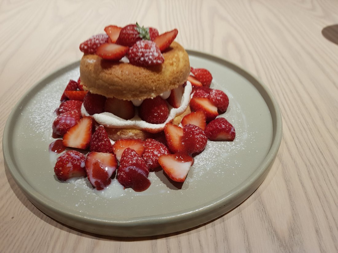 En poussant la porte du Koe Donuts à Tokyo je me disais que nous aurions droit à un petit dejeuner copieux et un peu « lourd ». C’etait sans compter la douceur et la fraîcheur que les japonais peuvent apporter à chaque plat. J’ai décidé de prendre le donut dont la photo trônait en haut de l’affiche : donut aux fraises….Après avoir apprécié la préparation faite avec précision (chaque fraise est posée avec une pince) j’ai apprécié ce dessert frais et délicat. Un moment de gourmandise absolu…Si vous passez à Kyoto n’hésitez pas à pousser la porte !